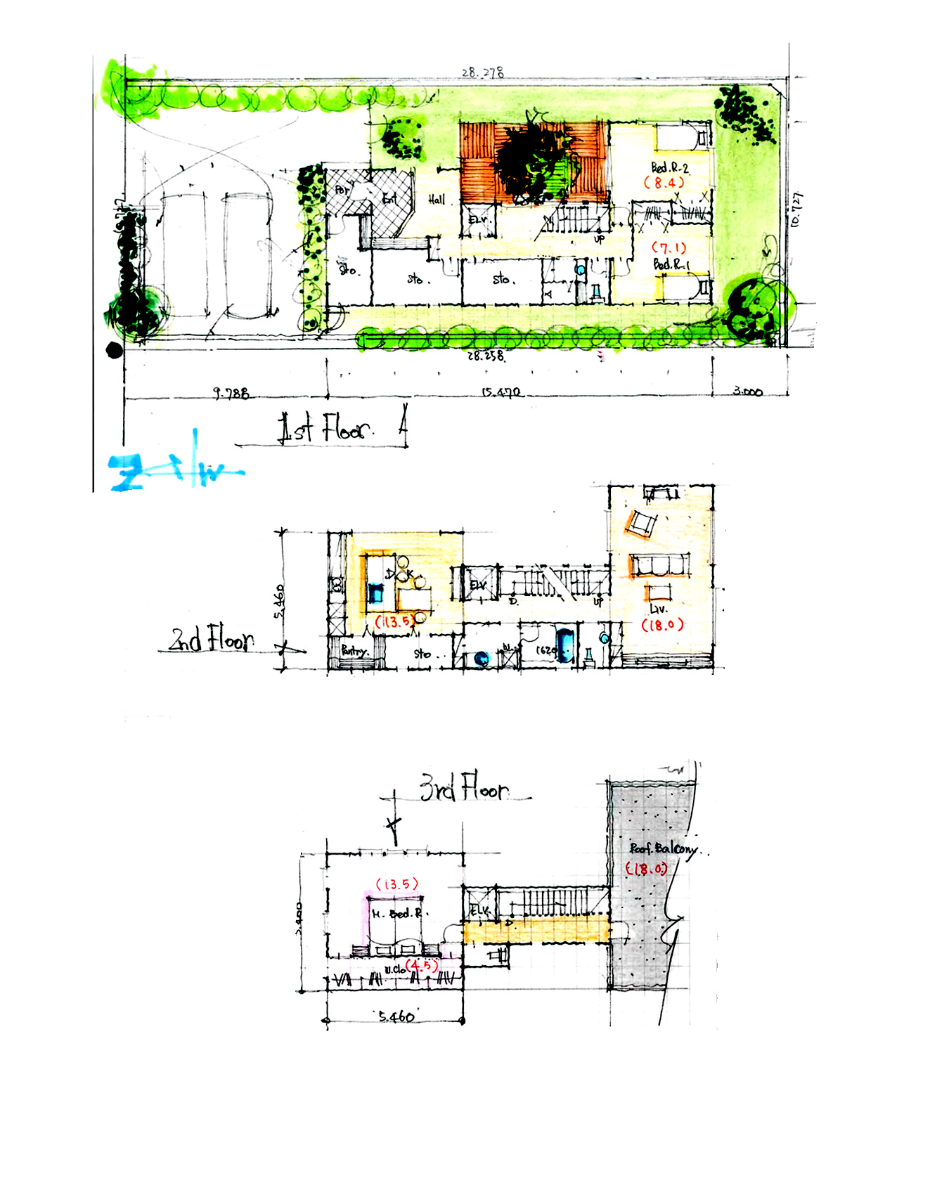 敷地面積/281.75㎡、建築面積/82.50㎡、延床面積/207.75㎡ 1F床面積/79.19㎡、2F床面積/82.50㎡、3F床面積/46.06㎡ 建ぺい率/30%、容積率/100% その他規制/10m高度地区、宅地造成法、砂防法、第一種風致地区、壁面後退/隣地1.5m、道路2.0m